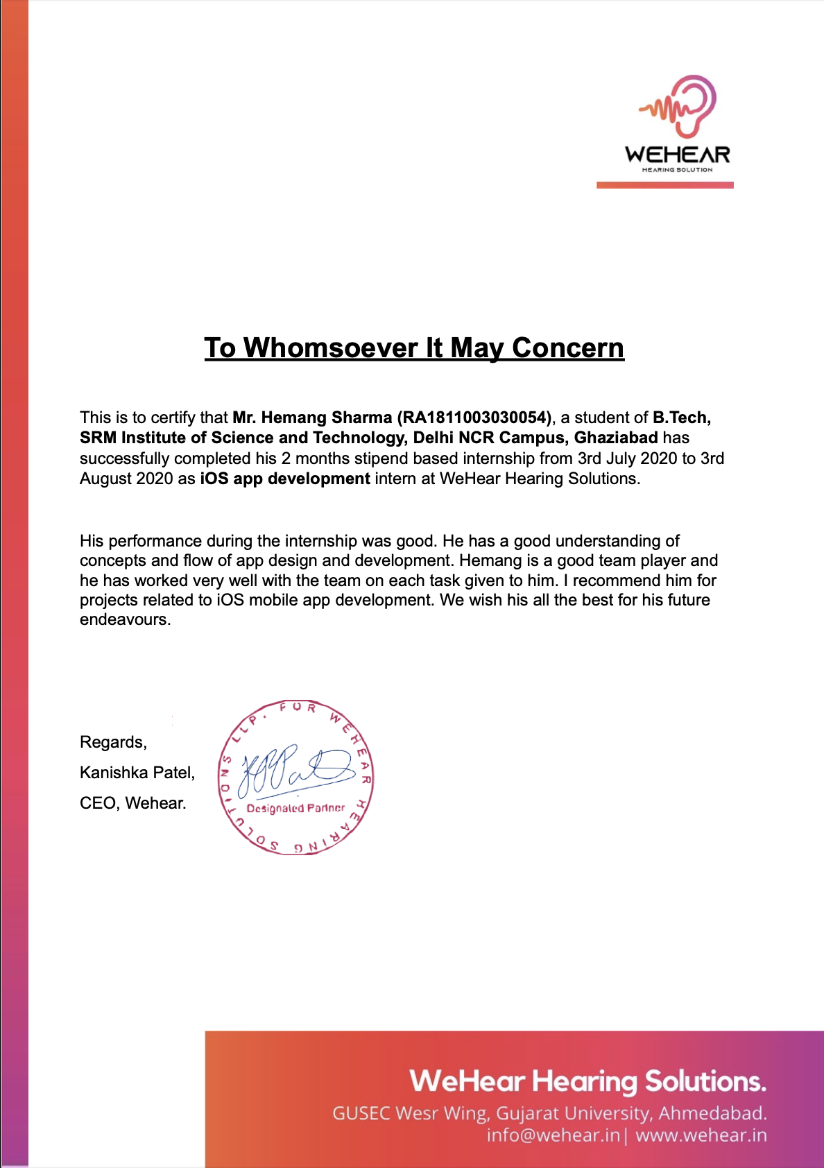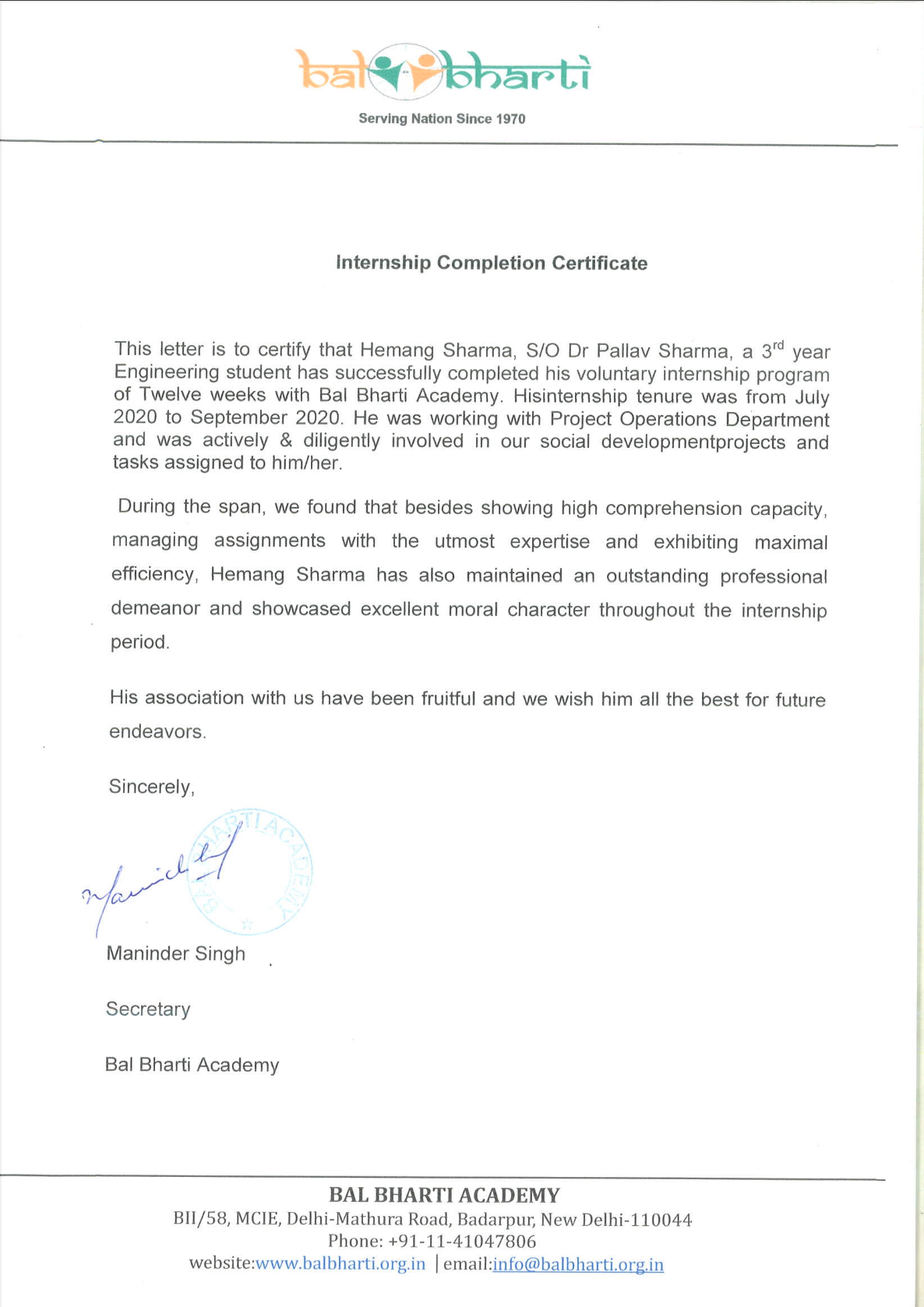 LOR by Asst. Prof. Ashish Chauhan (Class Incharge)