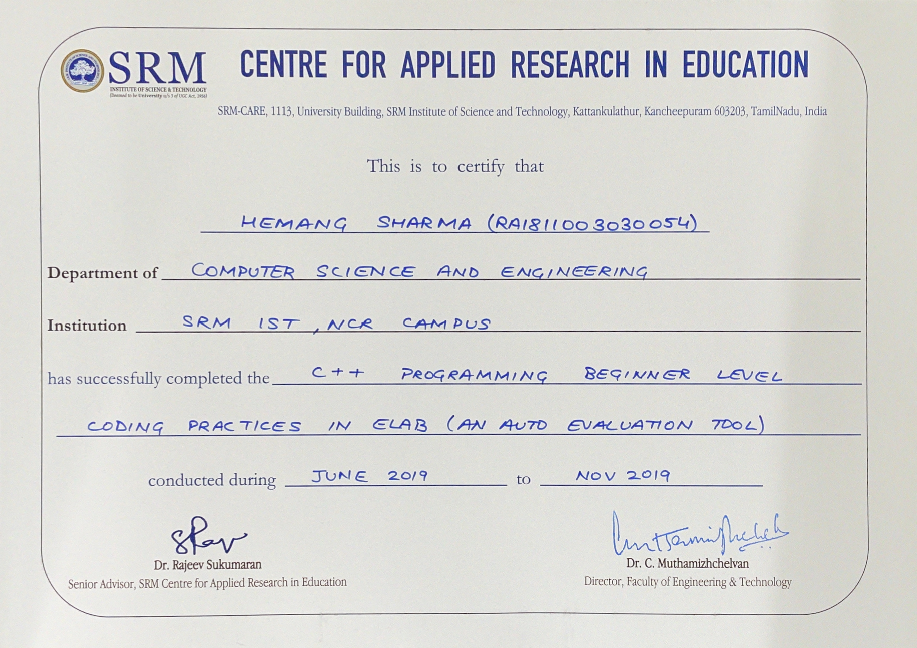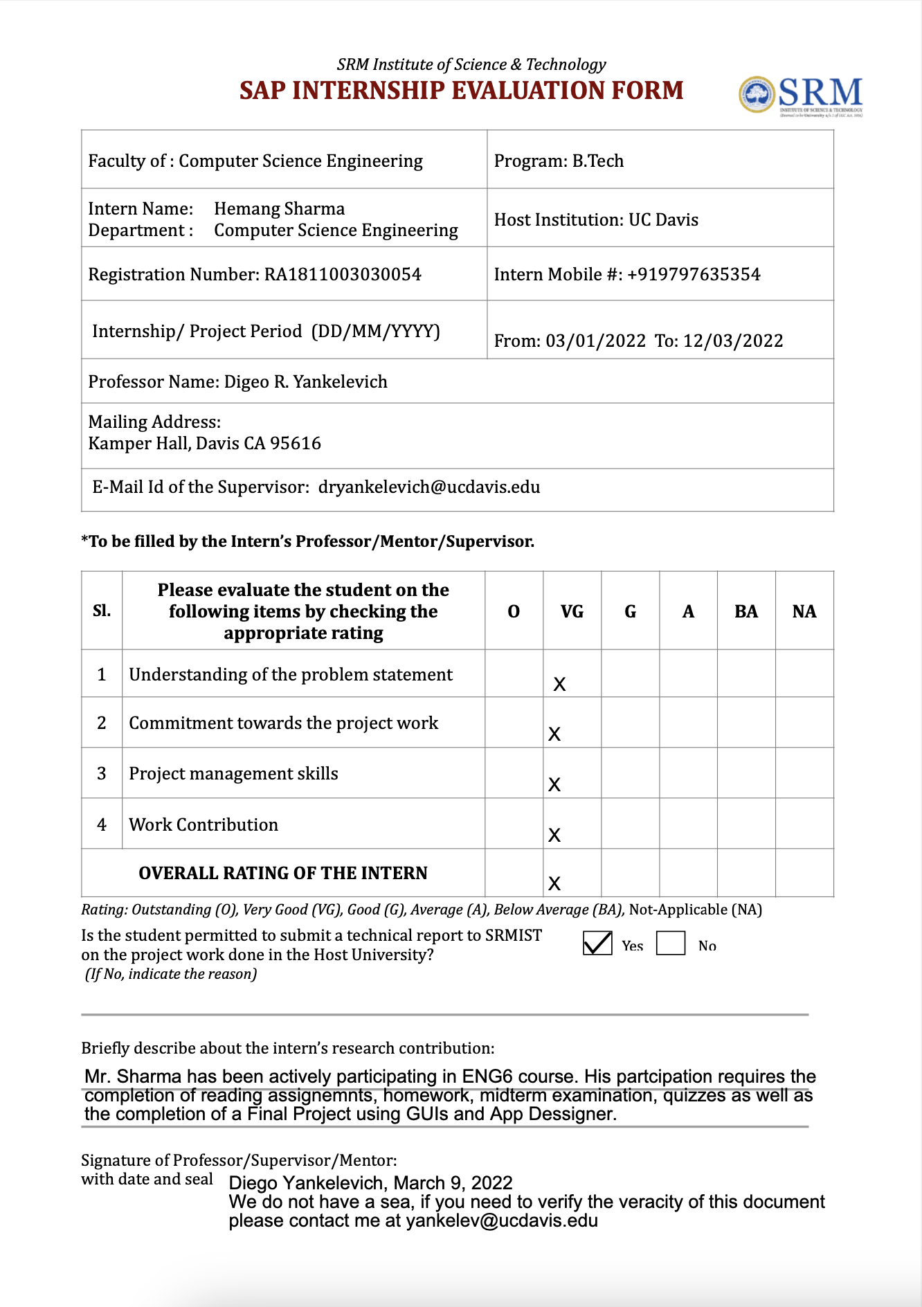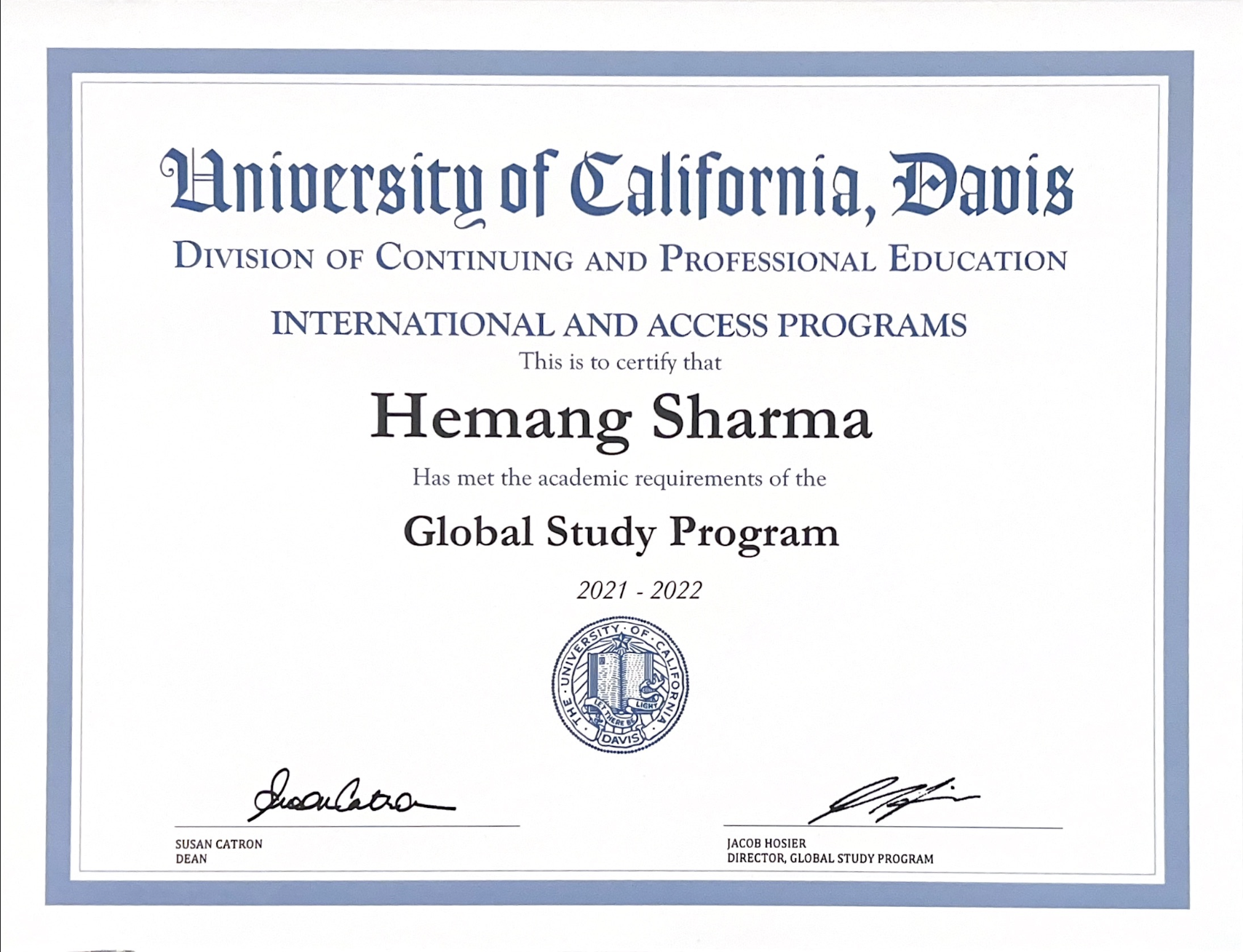 Certificate by Deniz Gozel (T.A at University of California Davis)