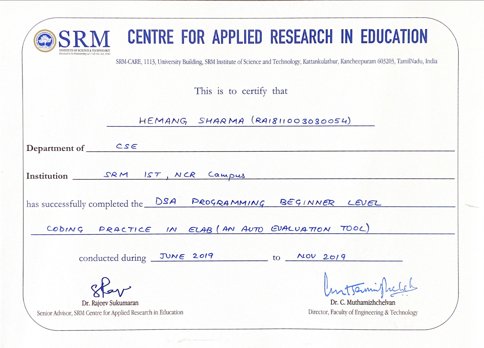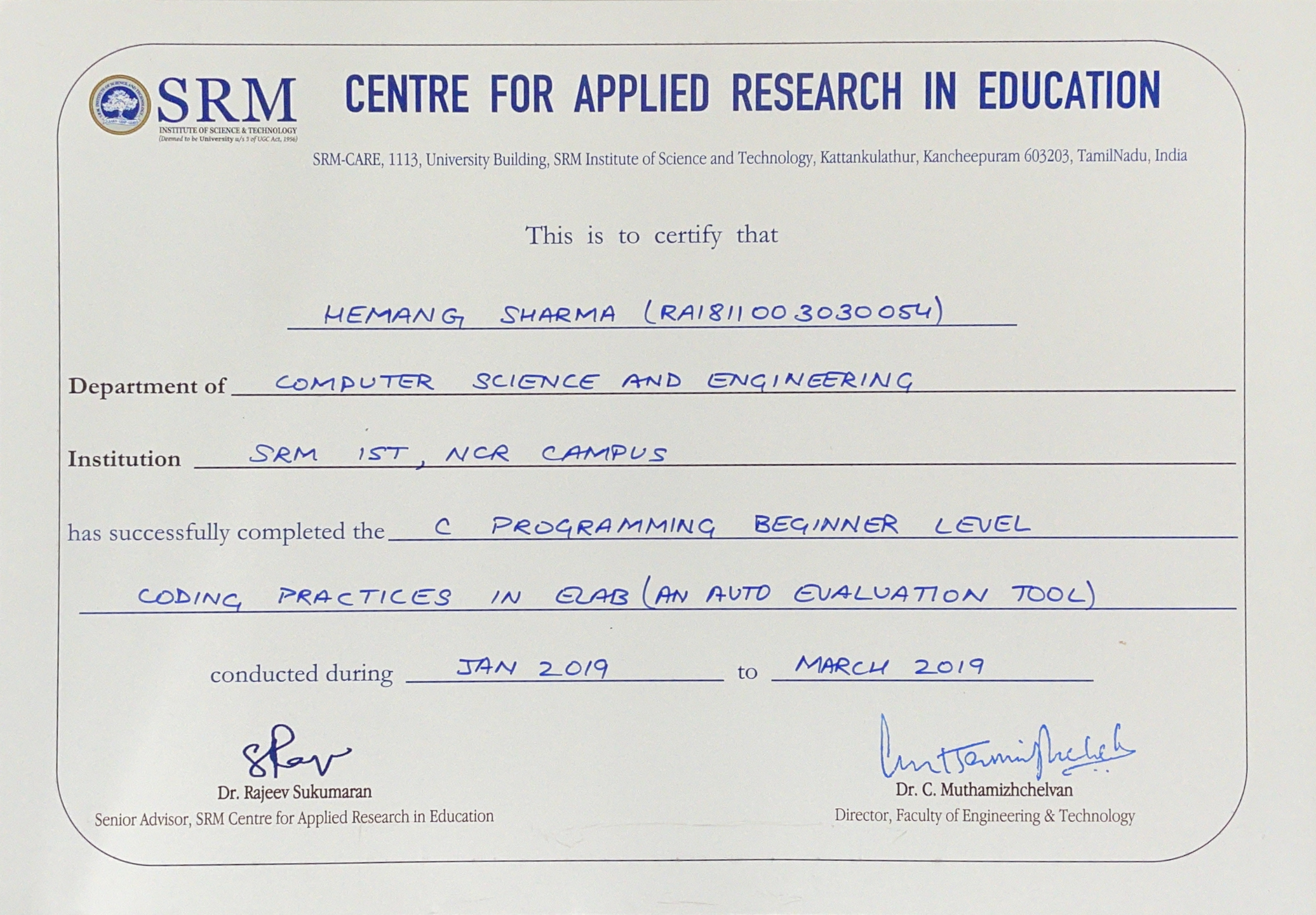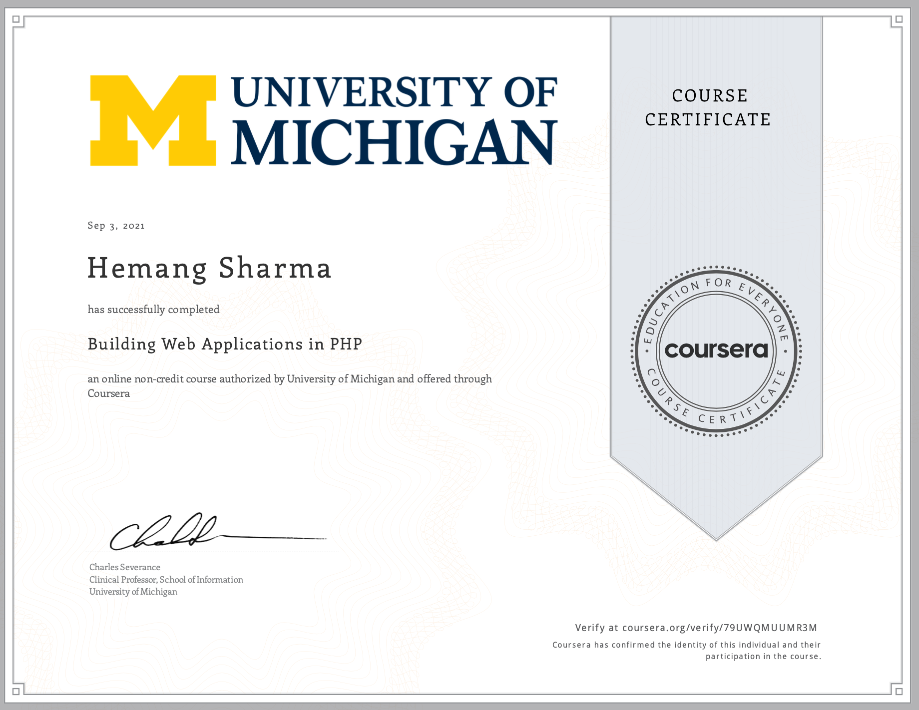 Certificate by Deniz Gozel (T.A at University of California Davis)